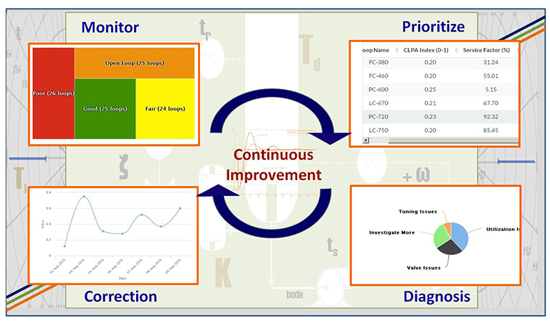 PID Performance Diagnosis : Advanced analytics like classification of loops based on performance Index, diagnosis for under-performance, trend assessment, investigation for oscillations, control element abnormalities, design and tuning issues and more…) – based on scientifically proven algorithms.